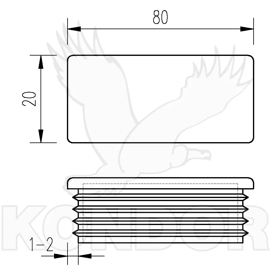 Plastová koncovka jeklu. Rozměry 80 x 20 mm. Možno nasadit na jekl o síle stěny 1–2 mm. Standardní barva je černá.