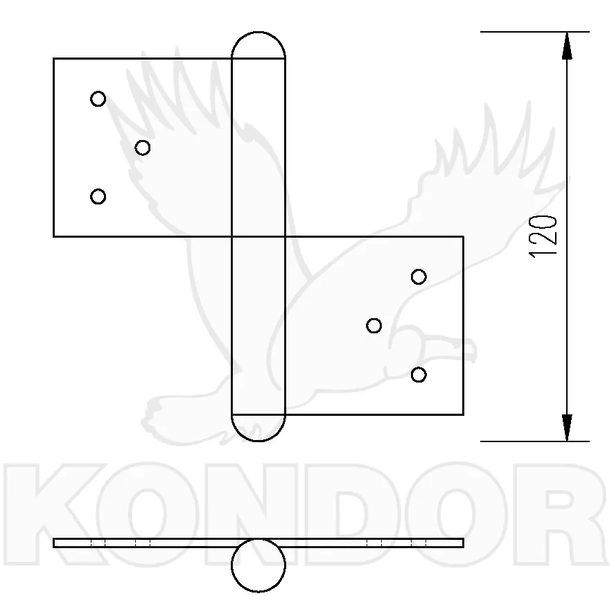 Umožňuje pohyblivé zavěšení dveří. Pant PRAVÝ. Délka 120 mm.