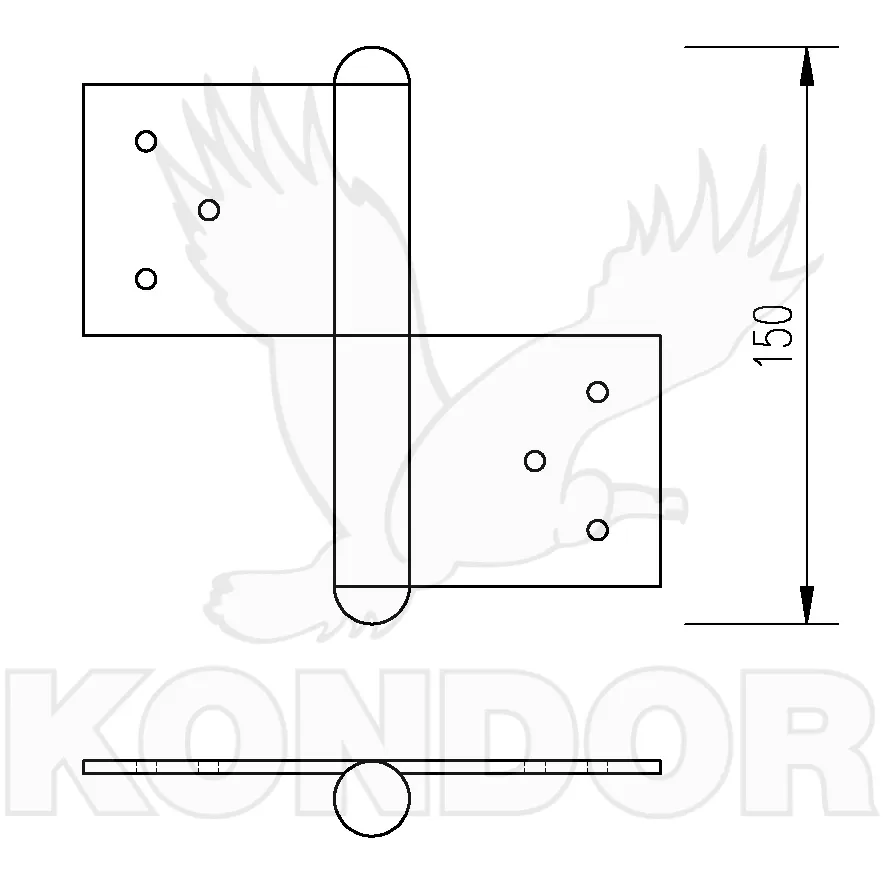 Umožní pohyblivé zavěšení vrat a brán. Pant PRAVÝ. Délka 150 mm.