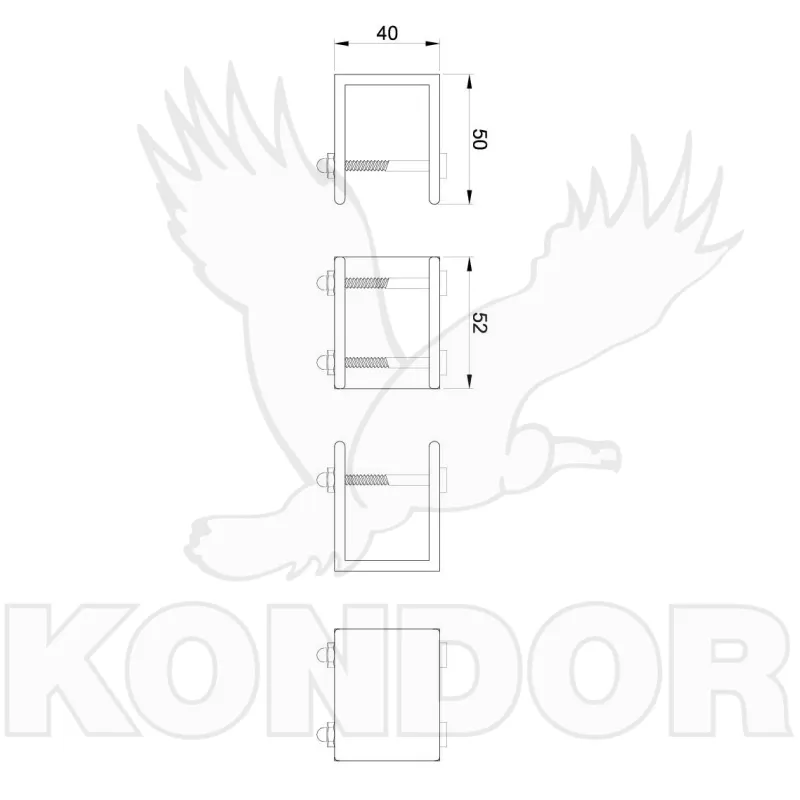 Objímka k závěsům pro jeklové sloupky. Rozměry 40 x 40 mm.
