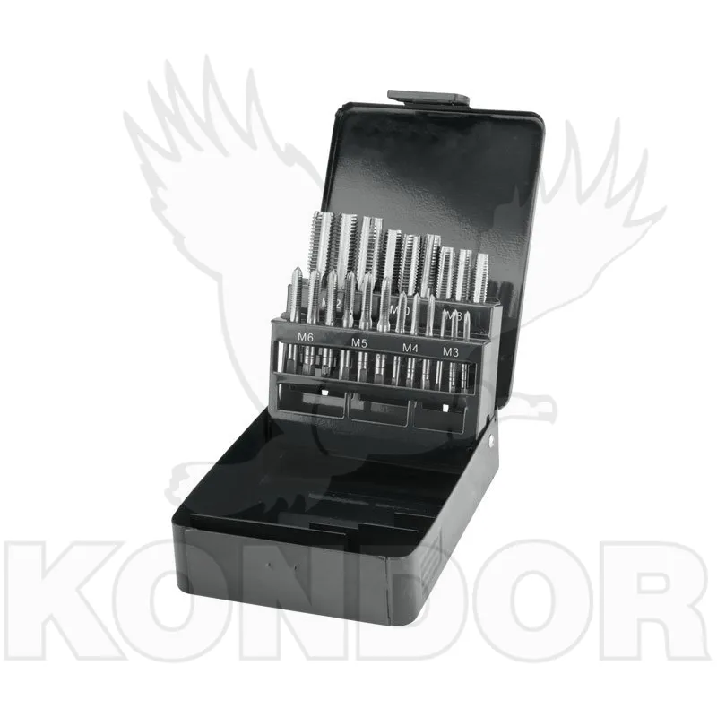 Sada závitníků v praktické kovové krabičce. Závitníky jsou v hodné pro domácí a méně náročné práce.
