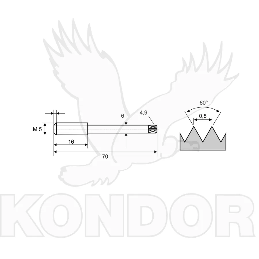 Strojní neprůběžný závitník vyrobený z HSSE - vysoce výkonné rychlořezné legované ocele 5% Co.