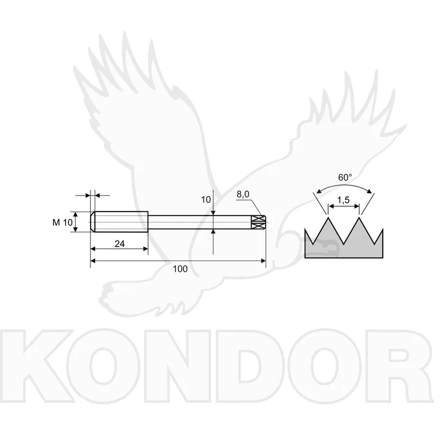 Strojní neprůběžný závitník vyrobený z HSSE - vysoce výkonné rychlořezné legované ocele 5% Co.