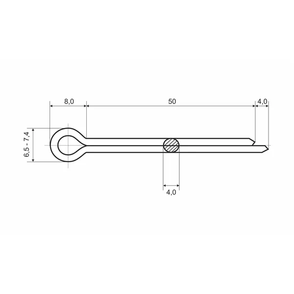 Jednoduchá galvanicky pozinkovaná závlačka pro aretaci do otvorů v hřídeli.