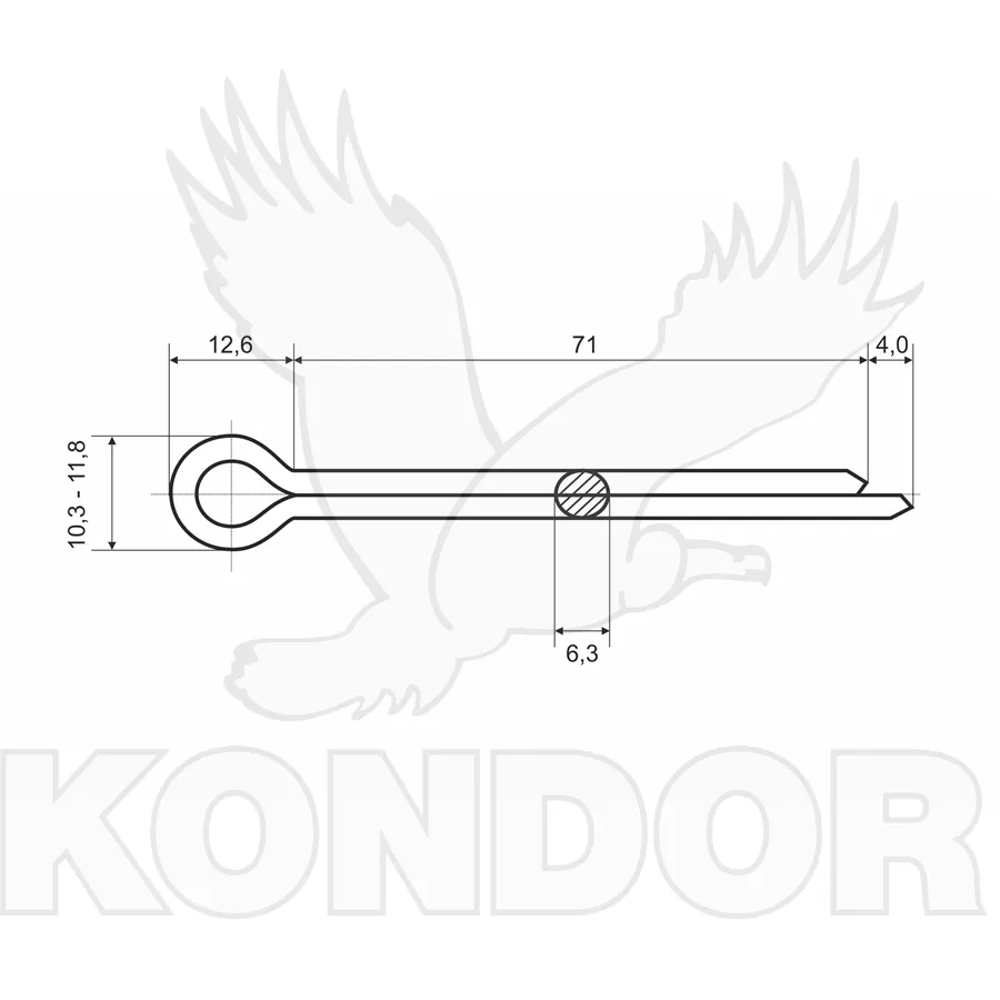 Jednoduchá galvanicky pozinkovaná závlačka pro aretaci do otvorů v hřídeli.